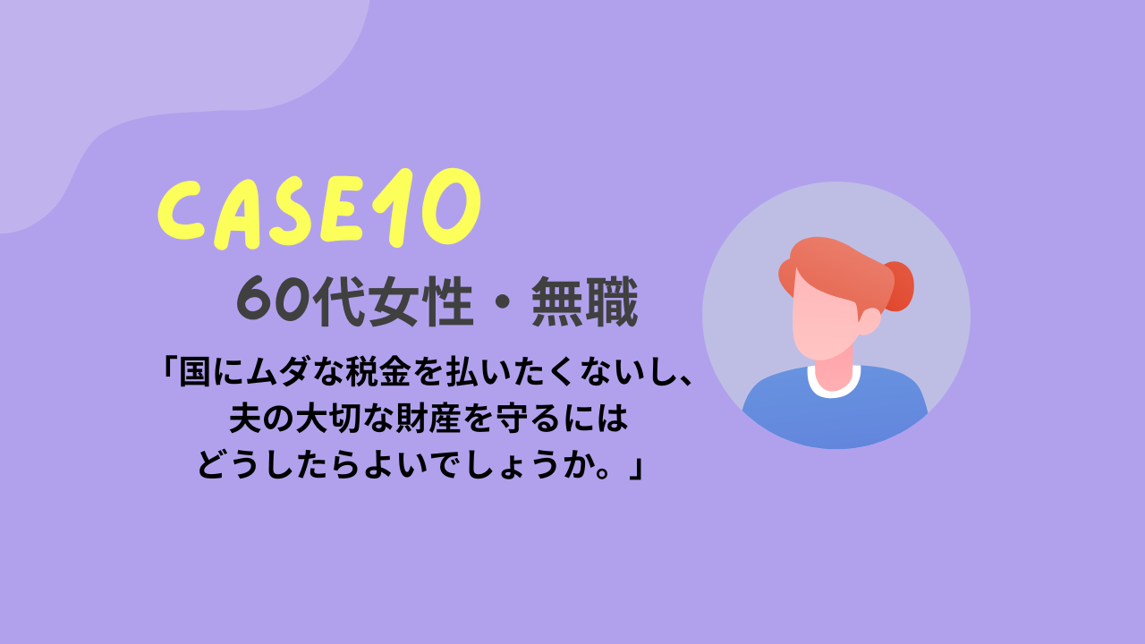 【CASE:10】国にムダな税金を払いたくないし、夫の大切な財産を守るにはどうしたらよいでしょうか。(60代女性・無職)