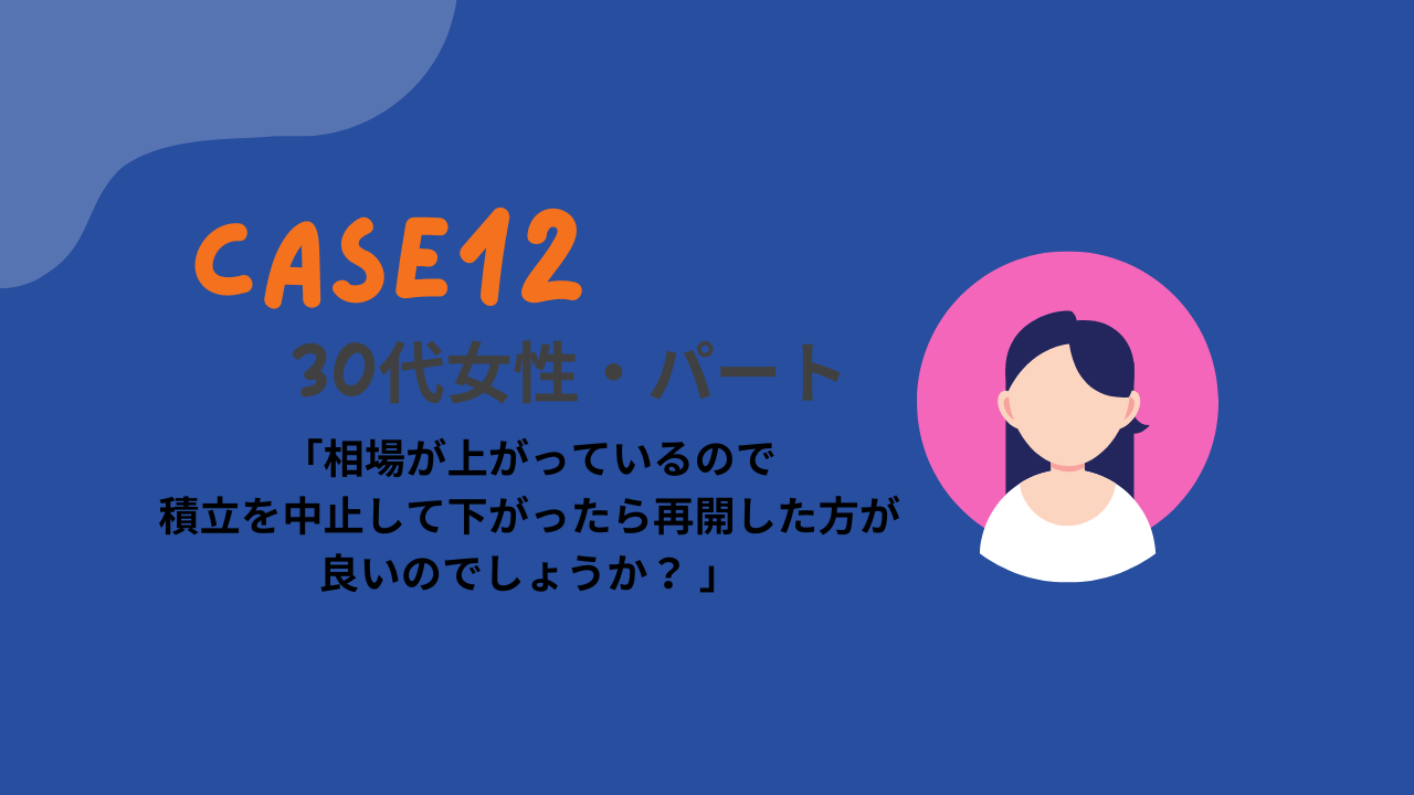 【CASE:12】新NISAになってから積立投資を始めました。相場が上がっているので積立中止して、下がったら再開した方が良いのでしょうか? (30代女性・パート)